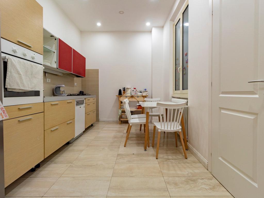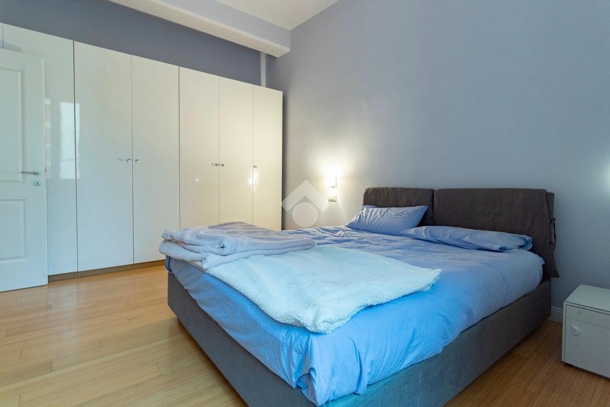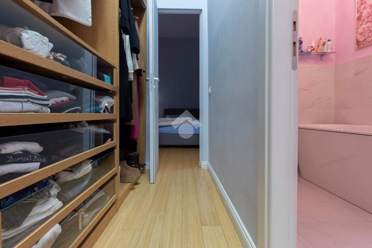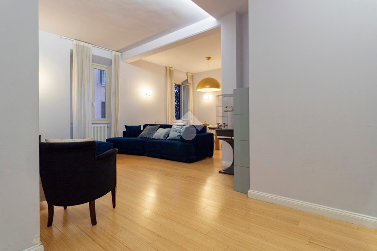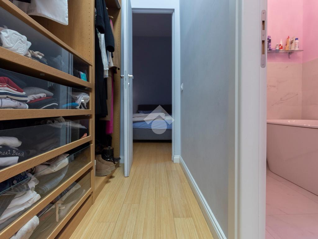 Internamente l'appartamento è composto da un ampio ingresso di rappresentanza che introduce ad un salone doppio di generose dimensioni, luminoso e allo stesso tempo molto silenzioso grazie ai suoi affacci su distacchi interni. La cucina abitabile, accessibile dal salone, è funzionale e ben organizzata ed è dotata di un comodo ripostiglio/lavanderia perfettamente integrato. La zona notte comprende due camere da letto, di cui una padronale con cabina armadio e bagno en-suite, affiancata da una seconda camera luminosa con balcone, ed un ulteriore bagno con doccia. Il riscaldamento è autonomo.