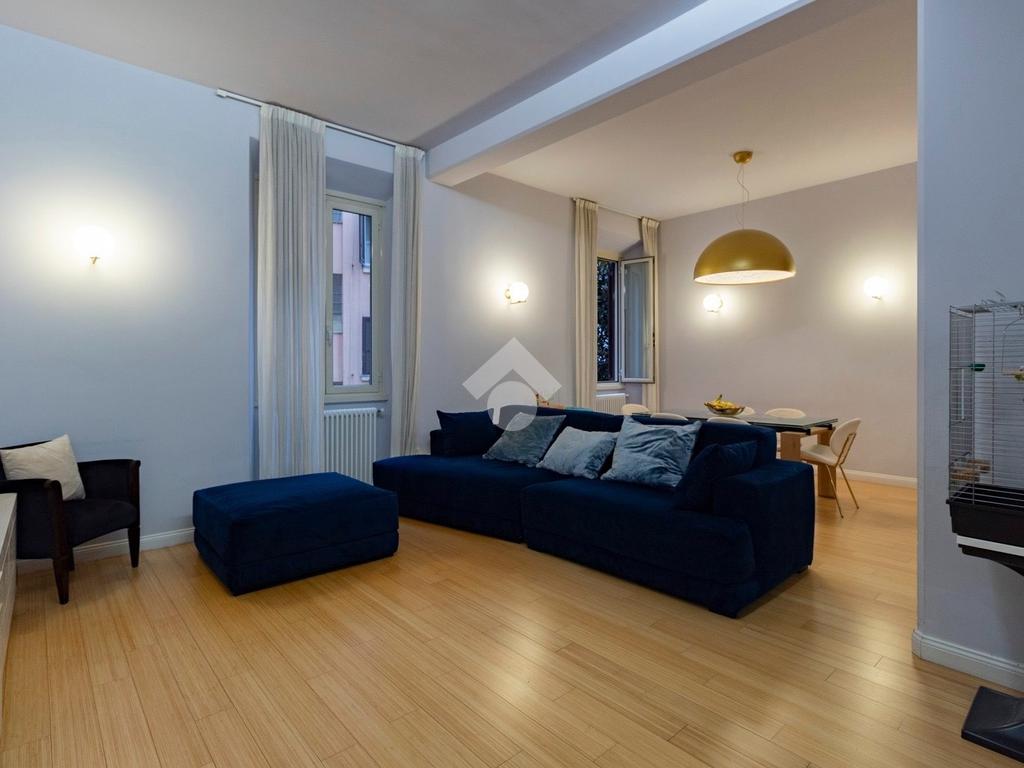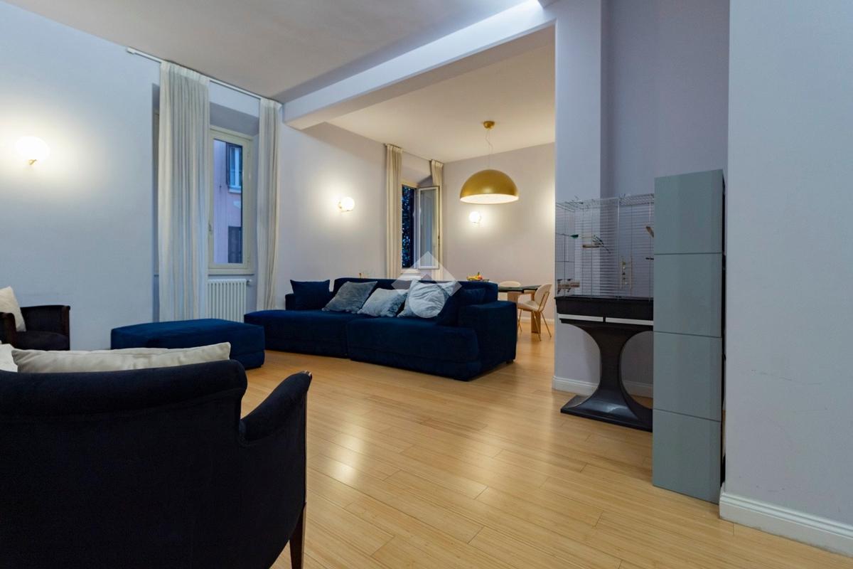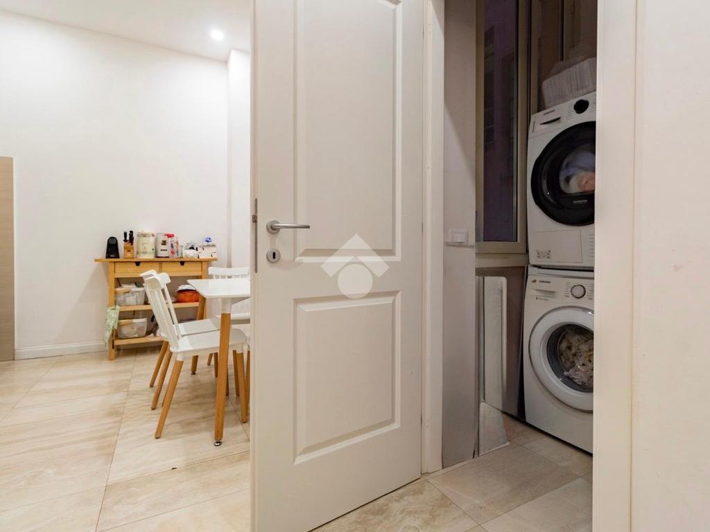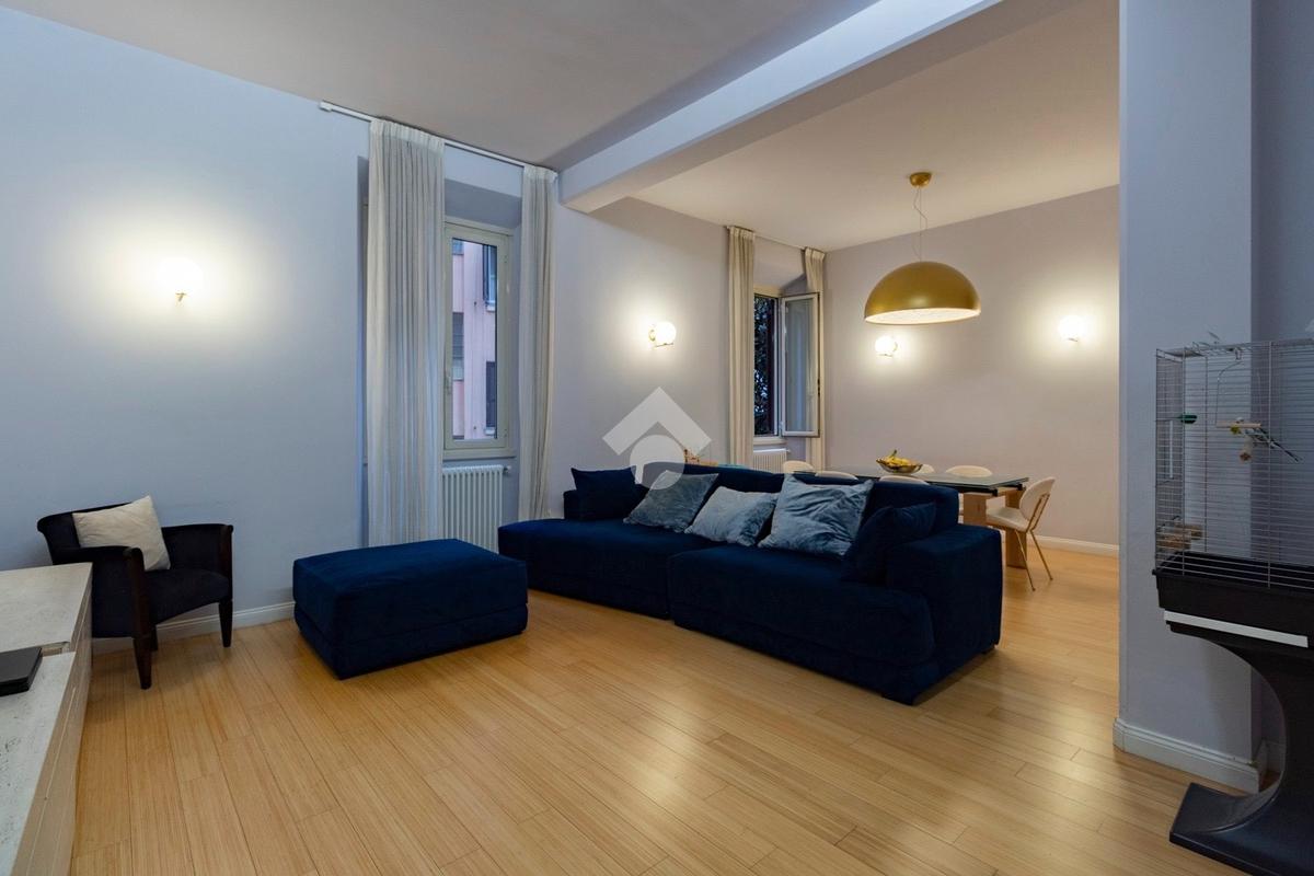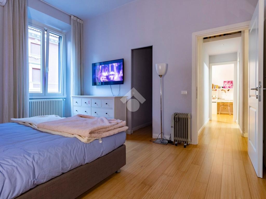 Internamente l'appartamento è composto da un ampio ingresso di rappresentanza che introduce ad un salone doppio di generose dimensioni, luminoso e allo stesso tempo molto silenzioso grazie ai suoi affacci su distacchi interni. La cucina abitabile, accessibile dal salone, è funzionale e ben organizzata ed è dotata di un comodo ripostiglio/lavanderia perfettamente integrato. La zona notte comprende due camere da letto, di cui una padronale con cabina armadio e bagno en-suite, affiancata da una seconda camera luminosa con balcone, ed un ulteriore bagno con doccia. Il riscaldamento è autonomo.
