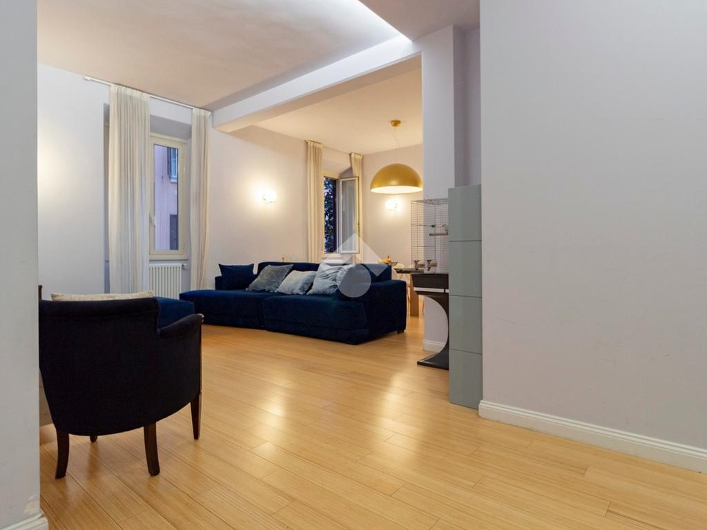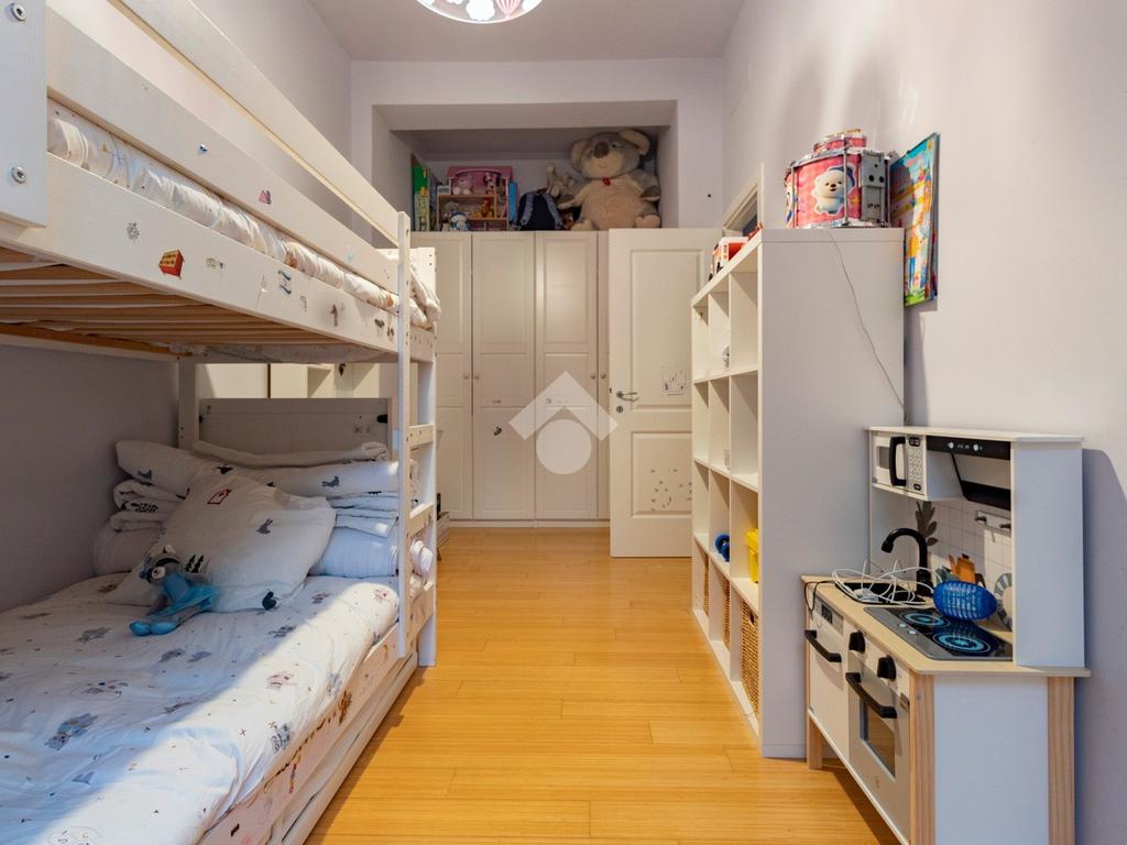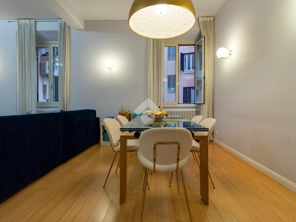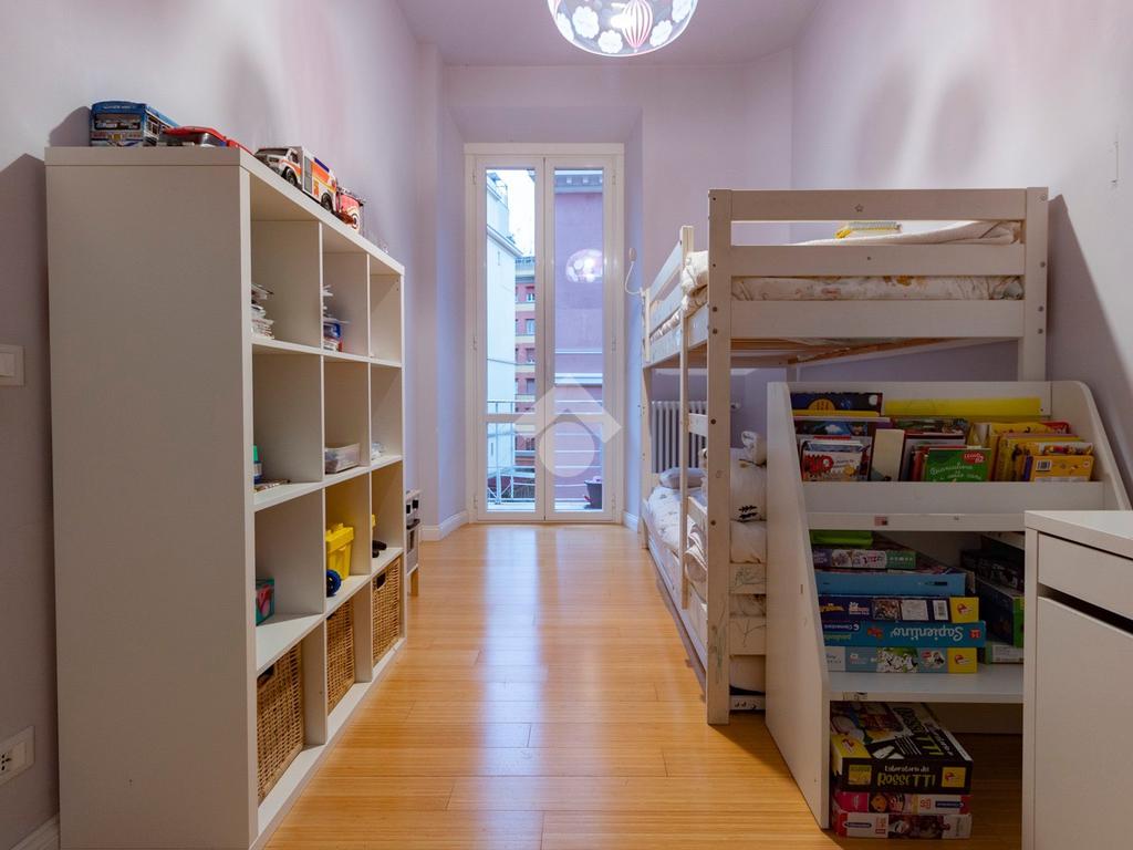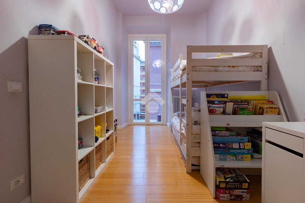 Internamente l'appartamento è composto da un ampio ingresso di rappresentanza che introduce ad un salone doppio di generose dimensioni, luminoso e allo stesso tempo molto silenzioso grazie ai suoi affacci su distacchi interni. La cucina abitabile, accessibile dal salone, è funzionale e ben organizzata ed è dotata di un comodo ripostiglio/lavanderia perfettamente integrato. La zona notte comprende due camere da letto, di cui una padronale con cabina armadio e bagno en-suite, affiancata da una seconda camera luminosa con balcone, ed un ulteriore bagno con doccia. Il riscaldamento è autonomo.